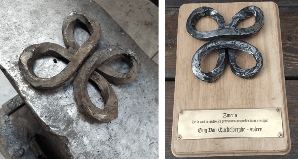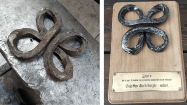 In a collaborative effort with two friends, I embarked on the challenge of forging a four-leaf clover, a symbol emblematic of my school, from a thick steel bar. This project was a significant learning experience, particularly in mastering heat control. The necessity of heating the bar to a malleable red-hot state, while cautiously avoiding overheating or burning the metal, greatly enhanced my skills in precise temperature management.