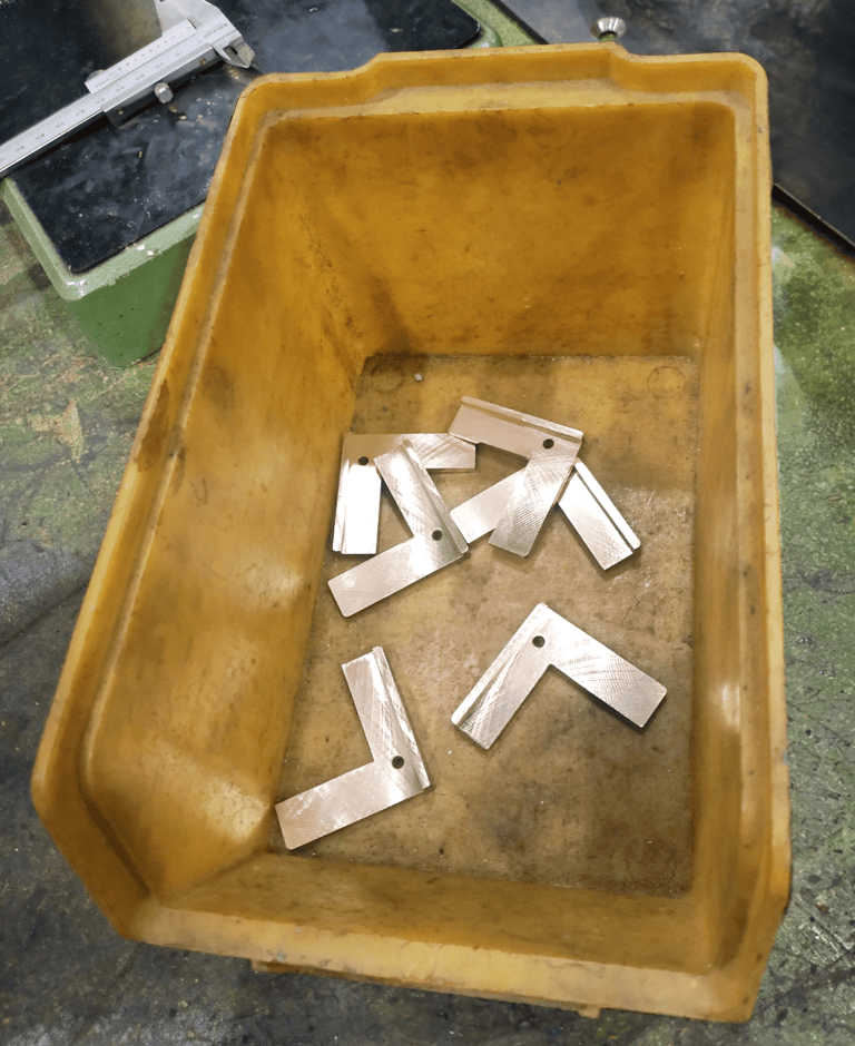The majority of our machining tasks were accomplished using milling machines. Initially, we utilized a conventional milling machine to reshape the long parallelepipedic brass bars into L-shaped forms. Subsequently, these bars were precisely segmented into individual pendants using a CNC machine, ensuring accuracy and consistency in each piece.