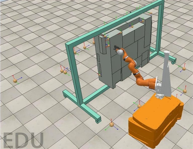 To verify the operational range of our robot, I created a simulation using CoppeliaSim. This simulation was instrumental in demonstrating the designed system's movement capabilities, ensuring it can effectively reach all necessary positions for optimal functionality.